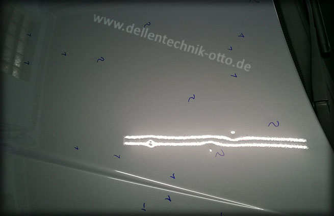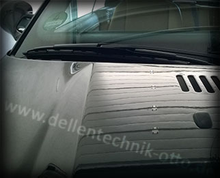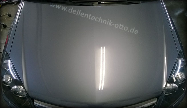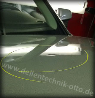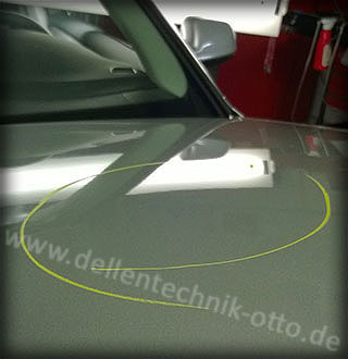 Dellen durch herabfallende Äste: Bmw 3er Cabrio Motorhaube - vorher (li.) nachher (re.)