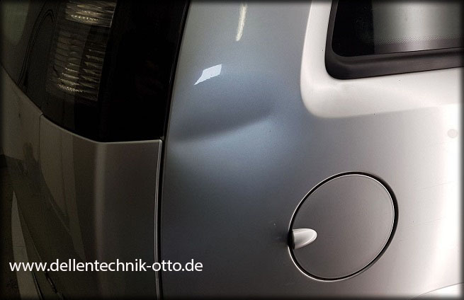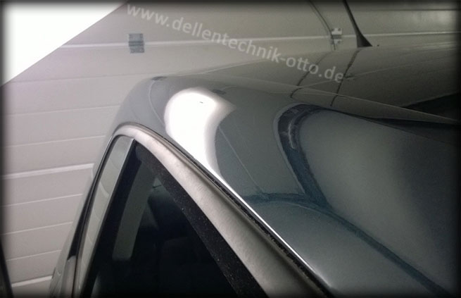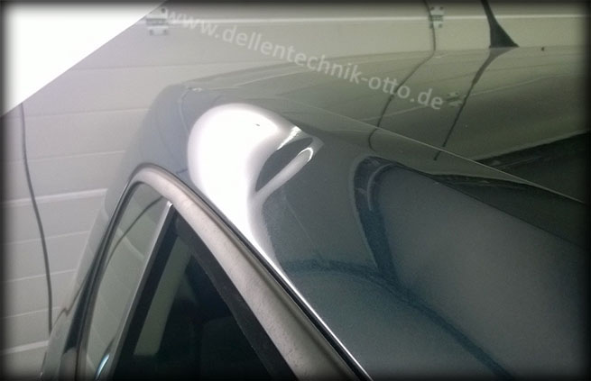 Große Delle: VW Golf Dachholm - vorher (oben) nachher (unten)